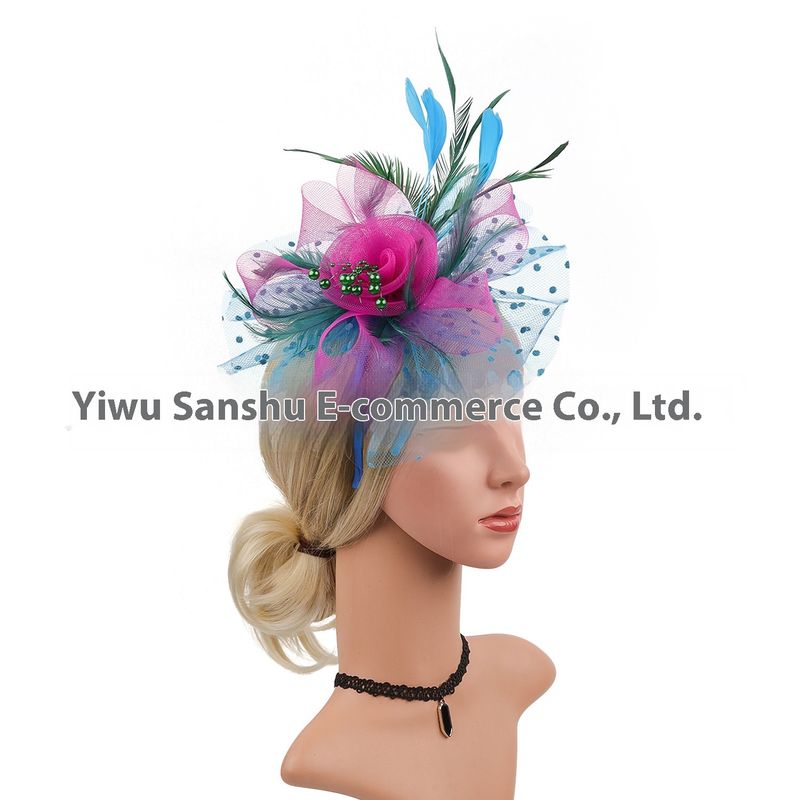 Headwear Bridal Hair Accessories Mesh Billycock Headband Lake blue green