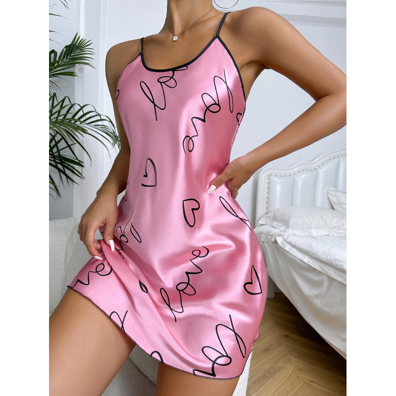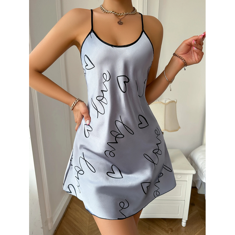 Heart Letter Print Nightdress Casual Round Neck Spaghetti Strap Sleep Dress Women's Sleepwear Dresses
