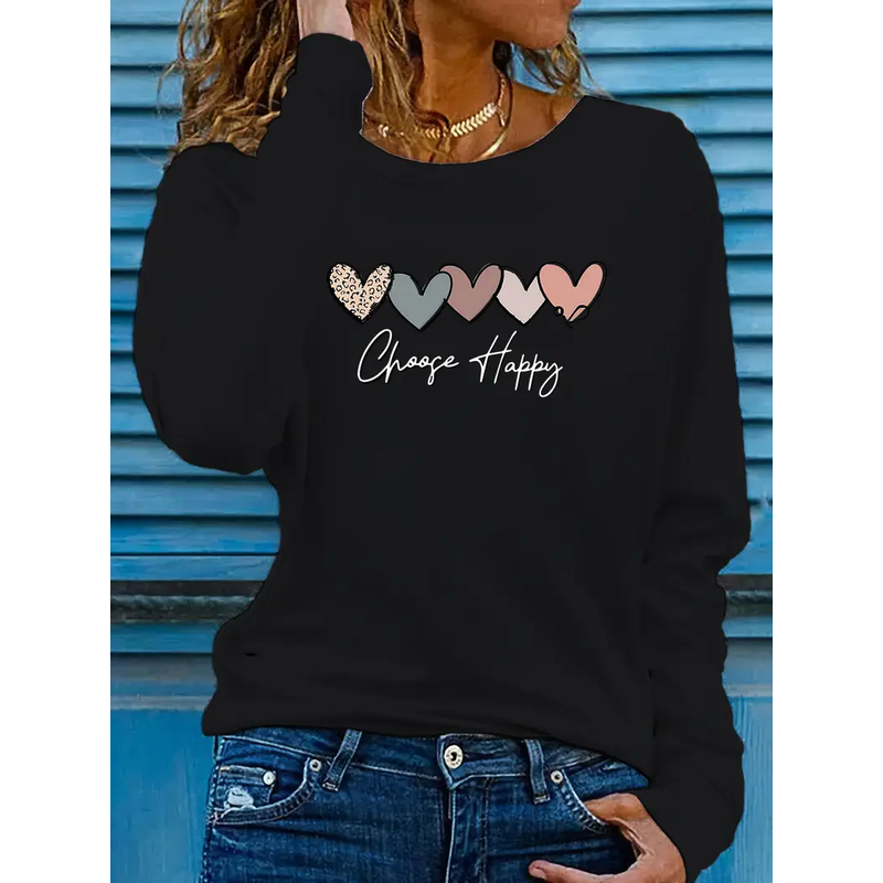 Heart Printed Shirt Funny Gothic T Shirt Women's Casual Print Long Sleeve T-Shirt Crew Neck Top Tee Tshirt