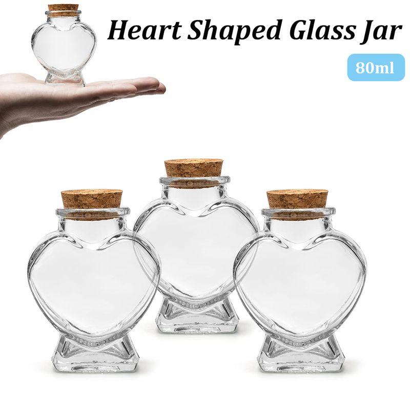 Heart-Shaped Empty Mini Glass Bottles with Cork Stoppers 80ml Cute Container Small Glass Bottles for DIY Art Crafts Supplies
