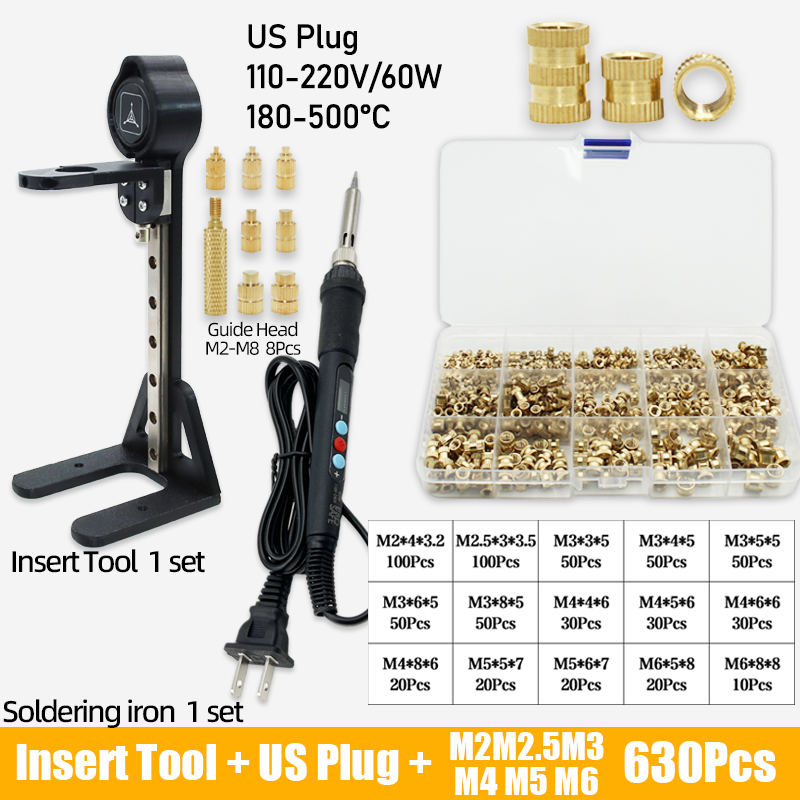 Heat Set Insert Press Tool Electric Soldering Iron Tip M2 M3 M4 M5 M6 M8 Thread Brass Inserts Nut Embedded Kit for 3d Printing