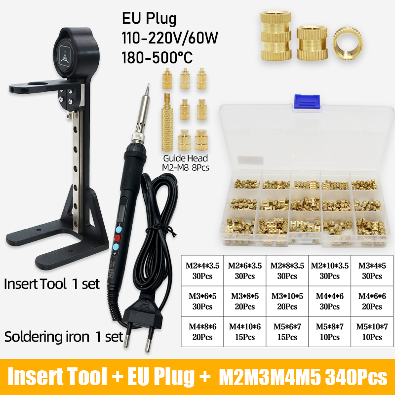 Heat Set Insert Press Tool Electric Soldering Iron Tip M2 M3 M4 M5 M6 M8 Thread Brass Inserts Nut Embedded Kit for 3d Printing