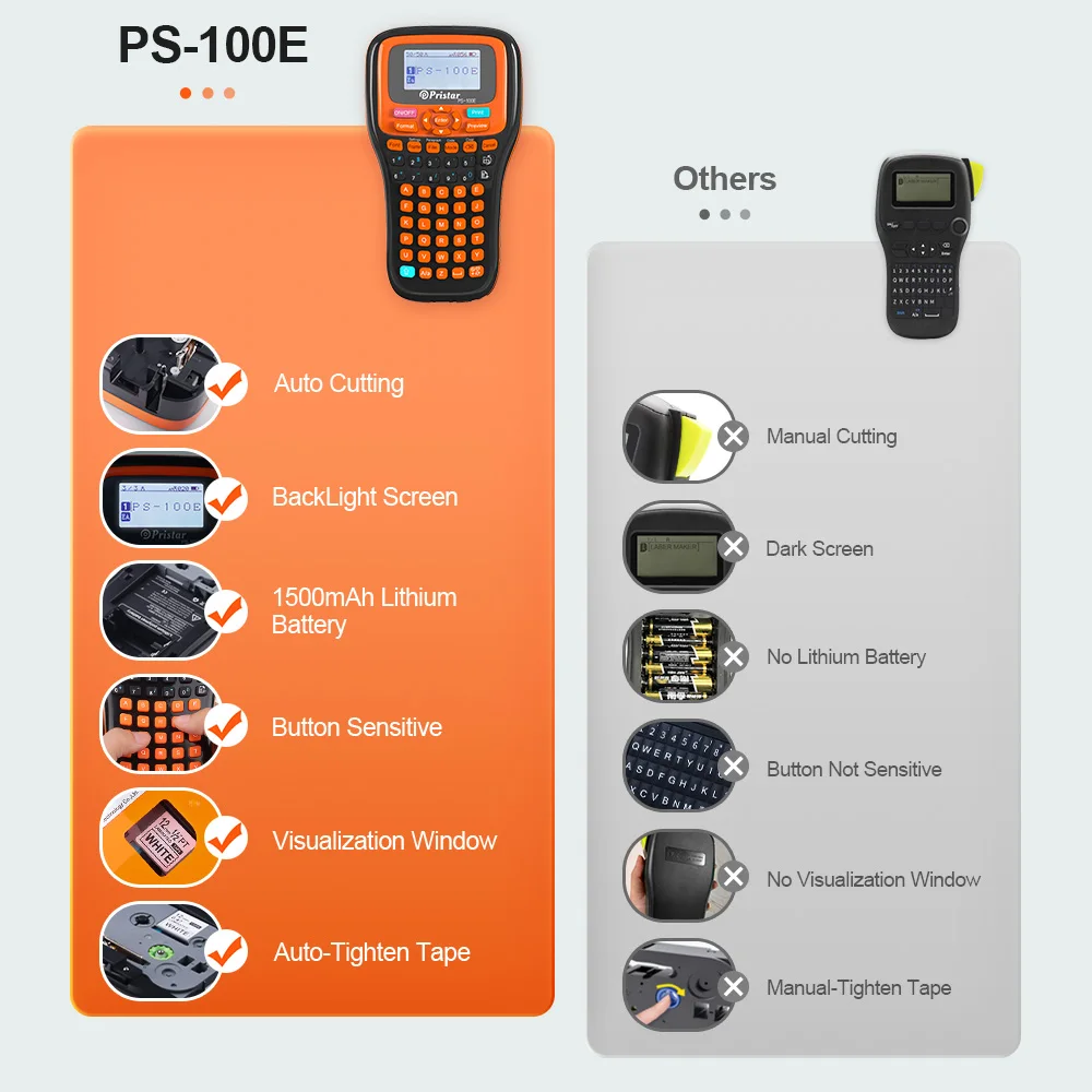 PS-100E Portable Label Printer Auto Cutting Wireless Industrial Labeling Machine Similar as Brother P-Touch Label Maker