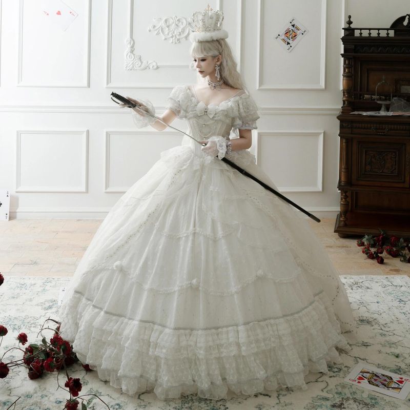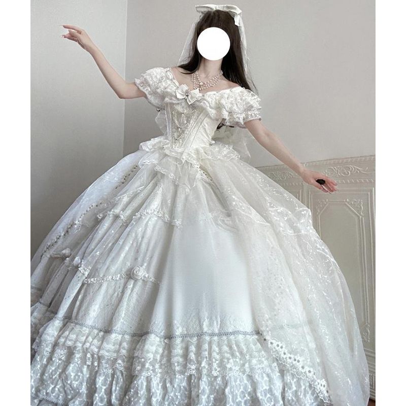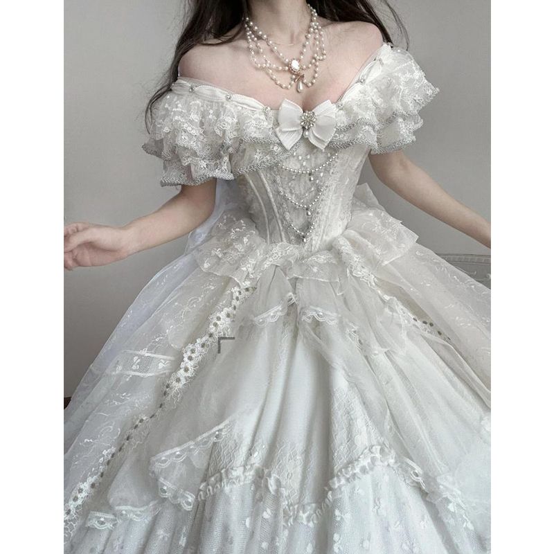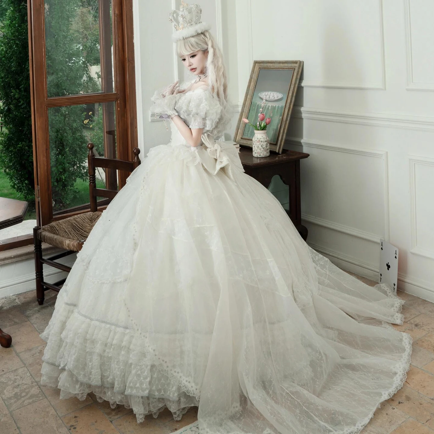 Heavy Craft Gorgeous Original Lolita Wedding Off-Shoulder Dress Birthday Coming-of-Age Ceremony Princess Style Evening Gown