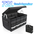 Heavy-Duty 72L Trunk Organizer for Car Large-Capacity Foladable Storage Box High-Density Oxford Cloth Waterproof Car Organizer