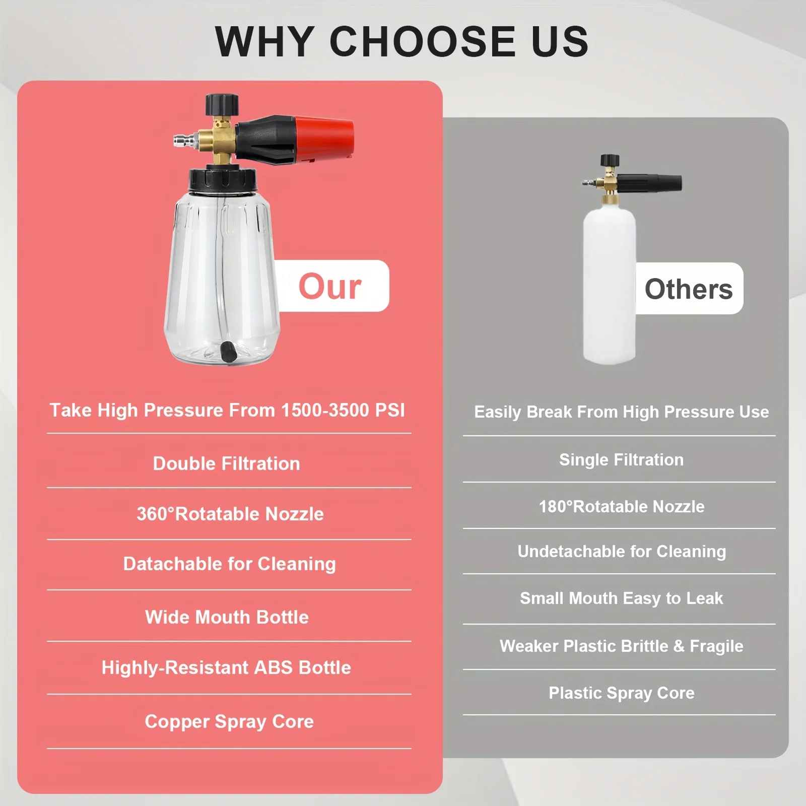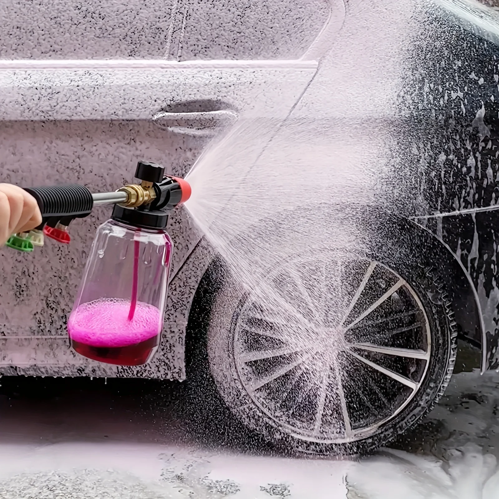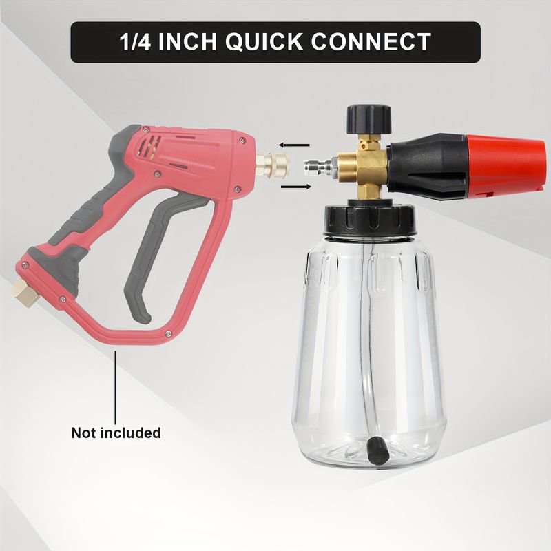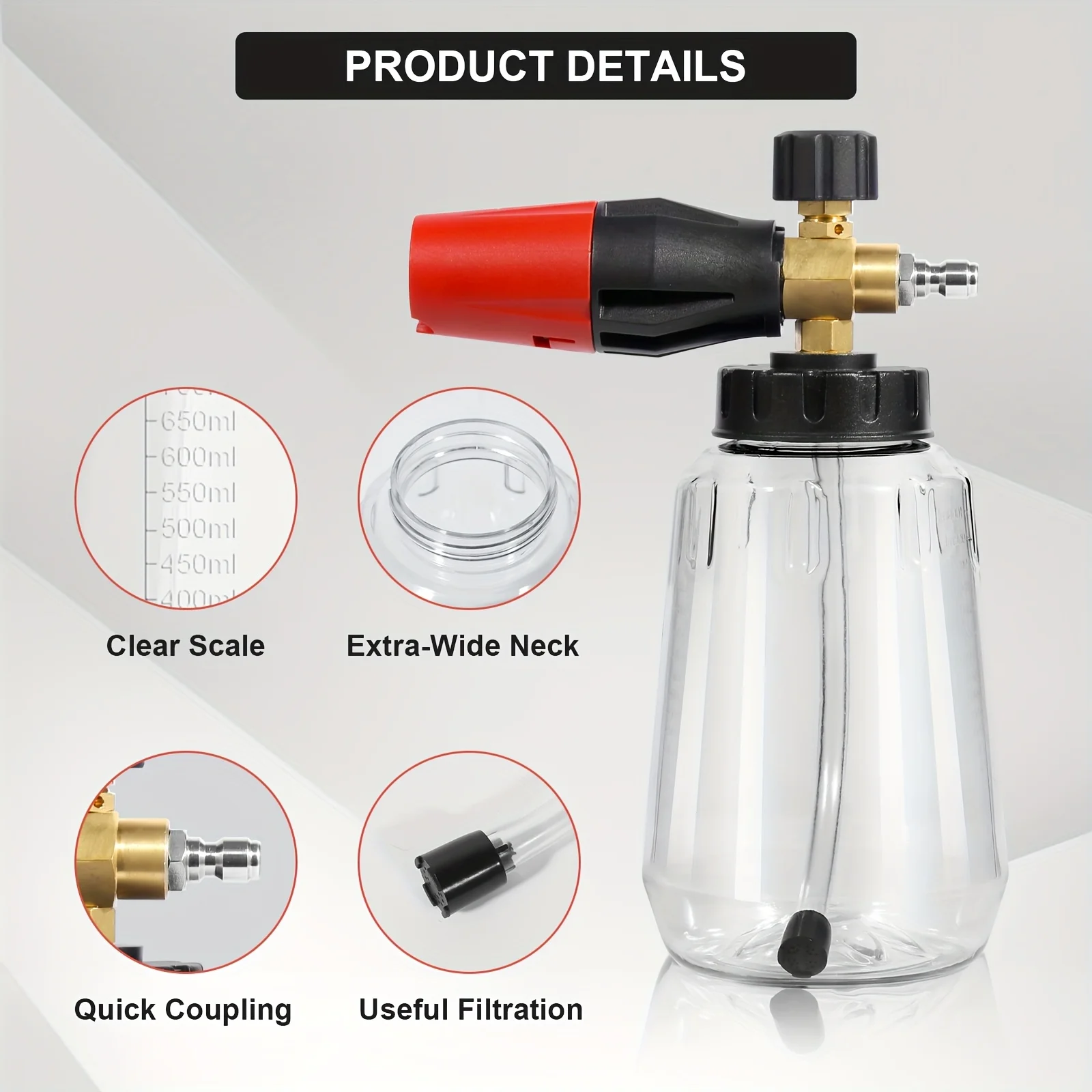 Heavy Duty Adjustable Foam Cannon 1L Wide Mouth Bottle Thick Foam Spray 1/4" Quick Connect High Pressure Washer Tool