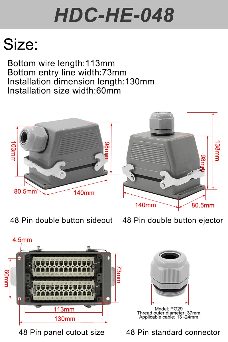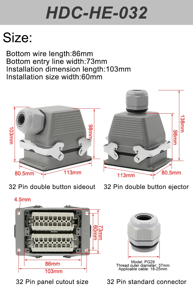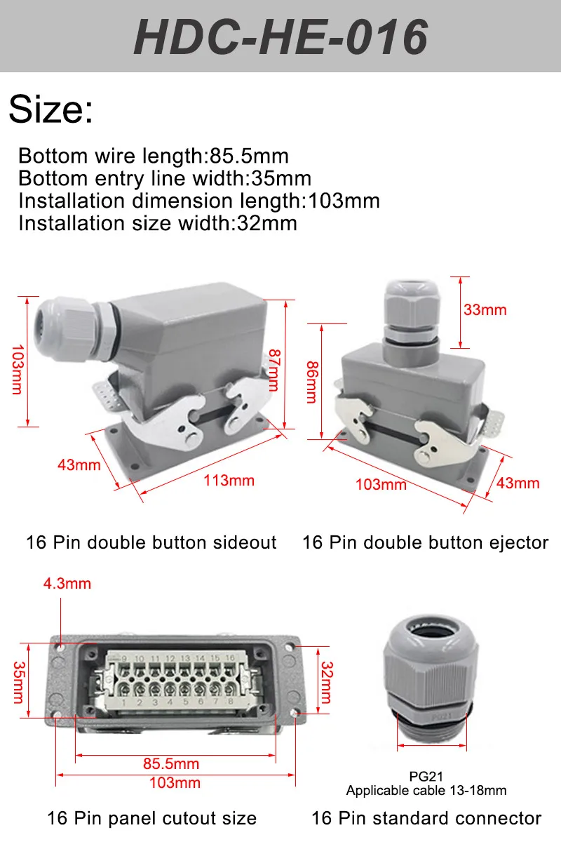 Conductor section: 0.37- 2.55mm²