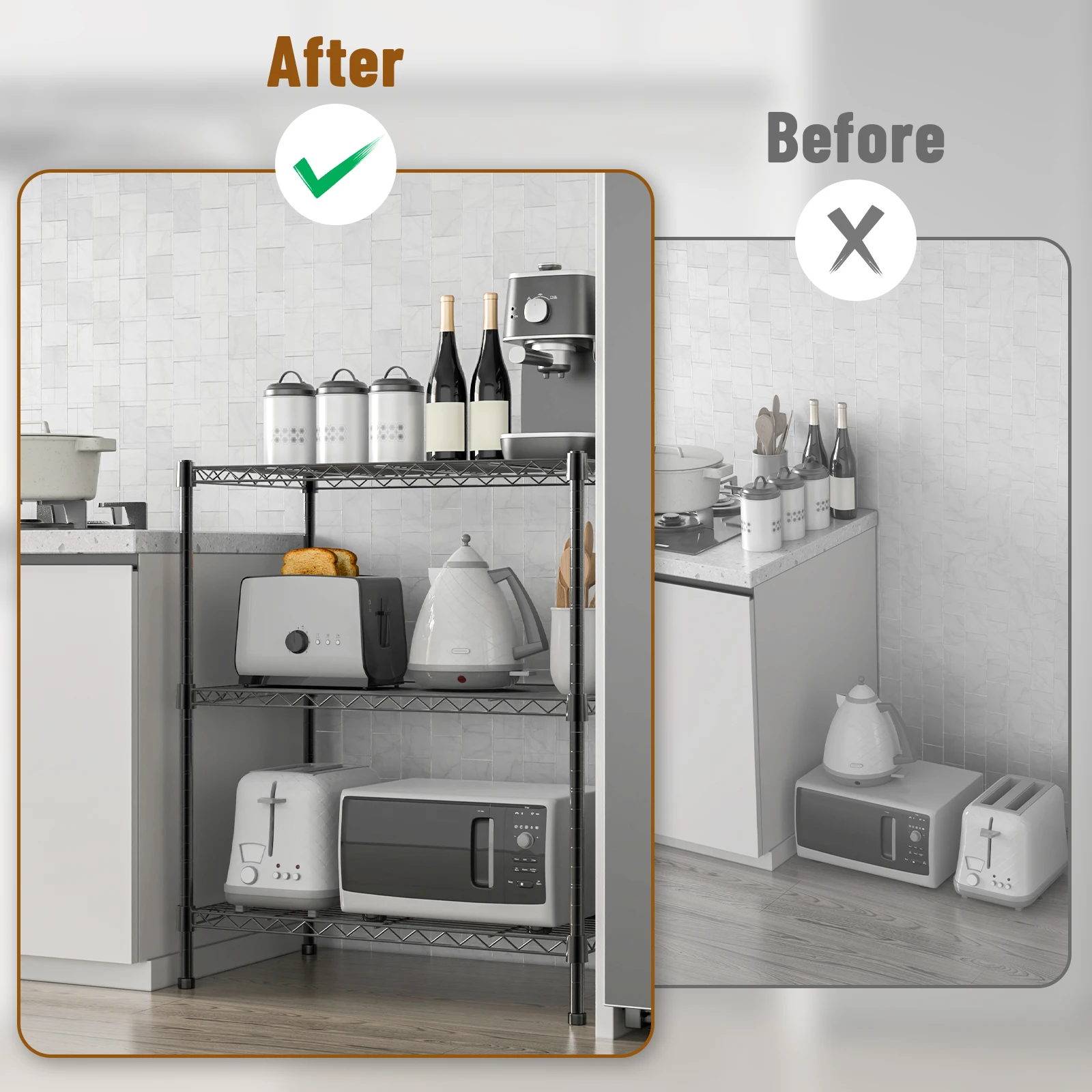 【Versatile】Ideal piece of furniture to store household essentials, appliances, dry food, tools and other accessories in kitchen, bathroom, living room or garden.