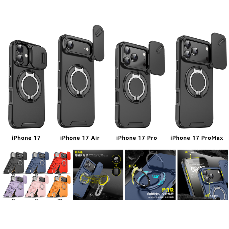 Heavy-duty Rugged Magnetic Ring Stand Case For iPhone 16 15 14 13 12 11 Pro Max Plus Slide Camera Protection For Magsafe Cover