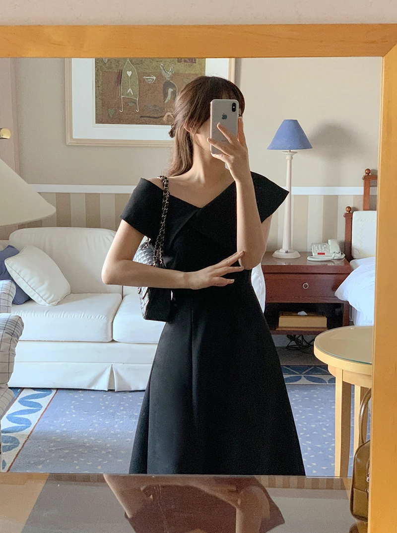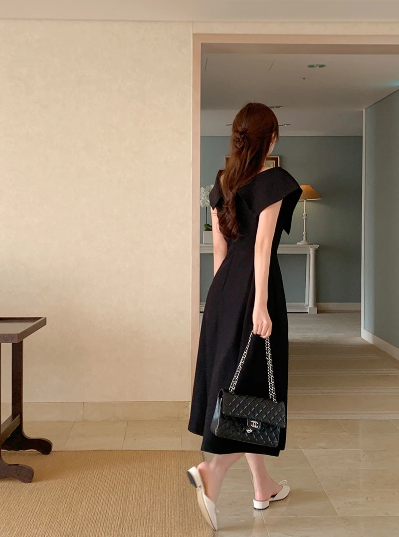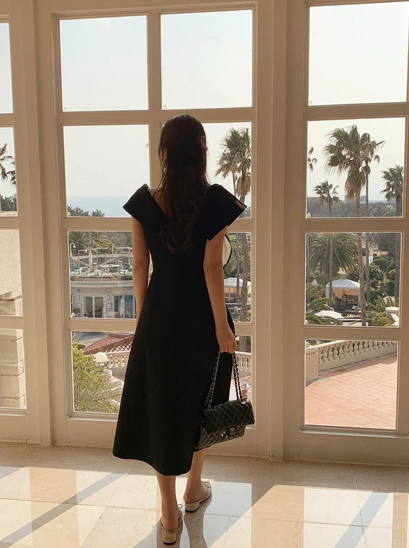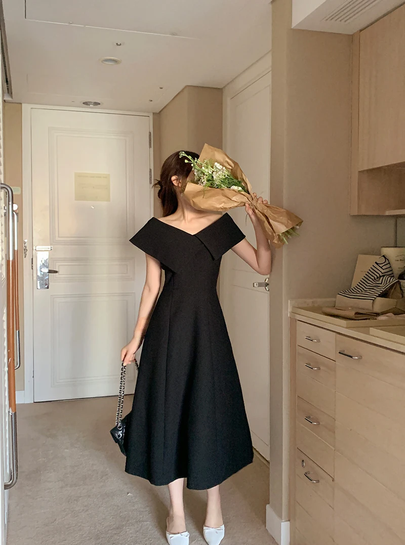 Embrace the chic Korean Ins style with this Hepburn-inspired dress, perfect for a summer outing.