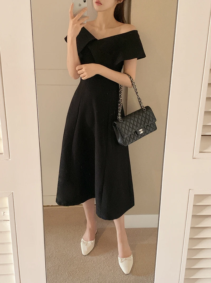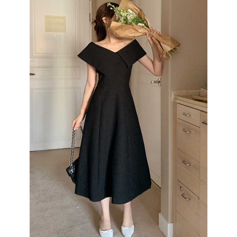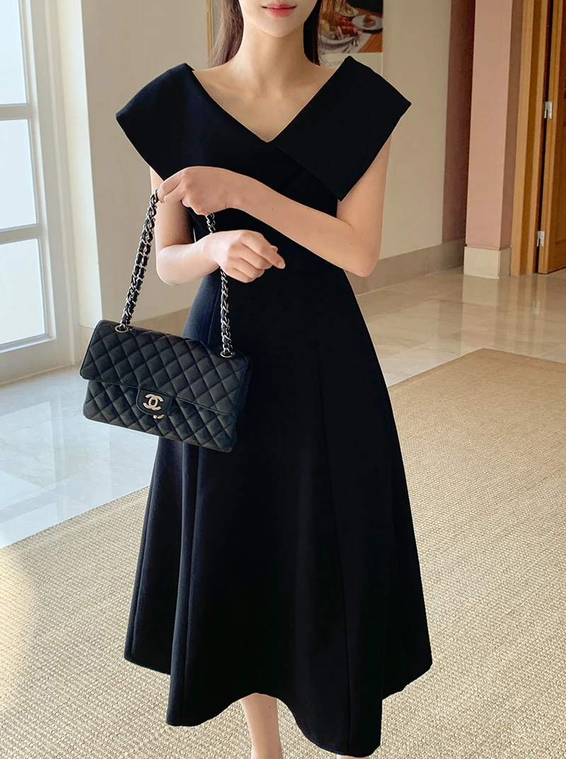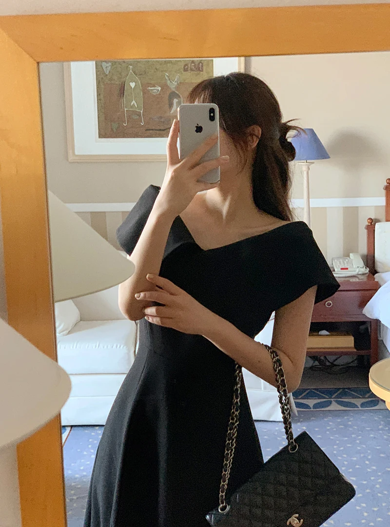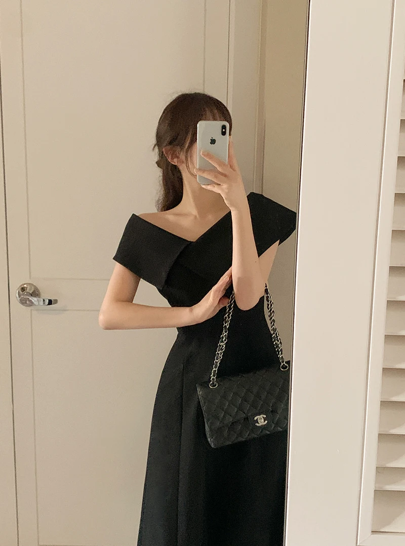 Embrace the chic Korean Ins style with this Hepburn-inspired dress, perfect for a summer outing.