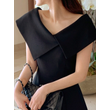 Hebe Sle Asymmetrical Collar Svel A-Line Dr Women's Summer New Color Blo Long Skirt Commute Sle Medium Softn