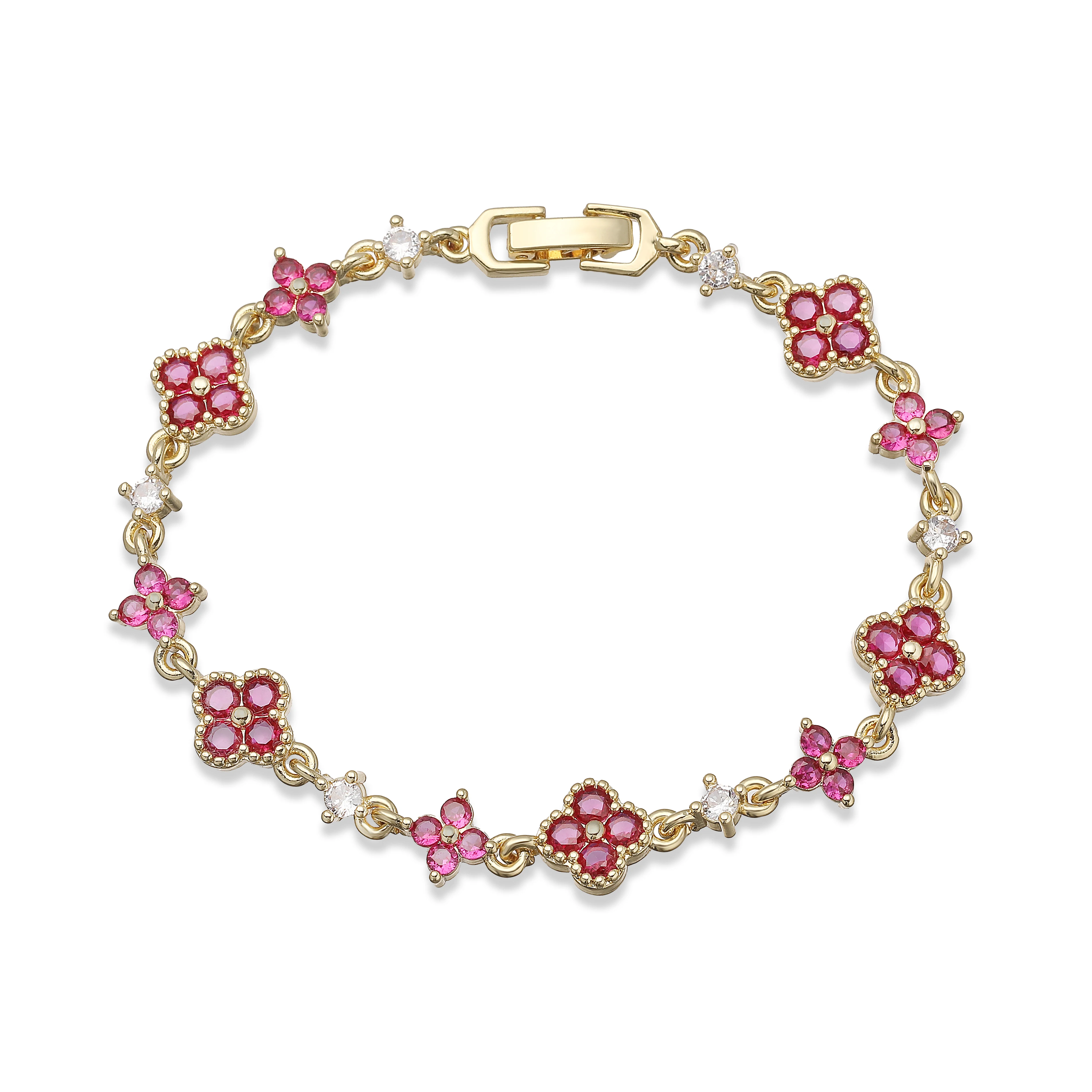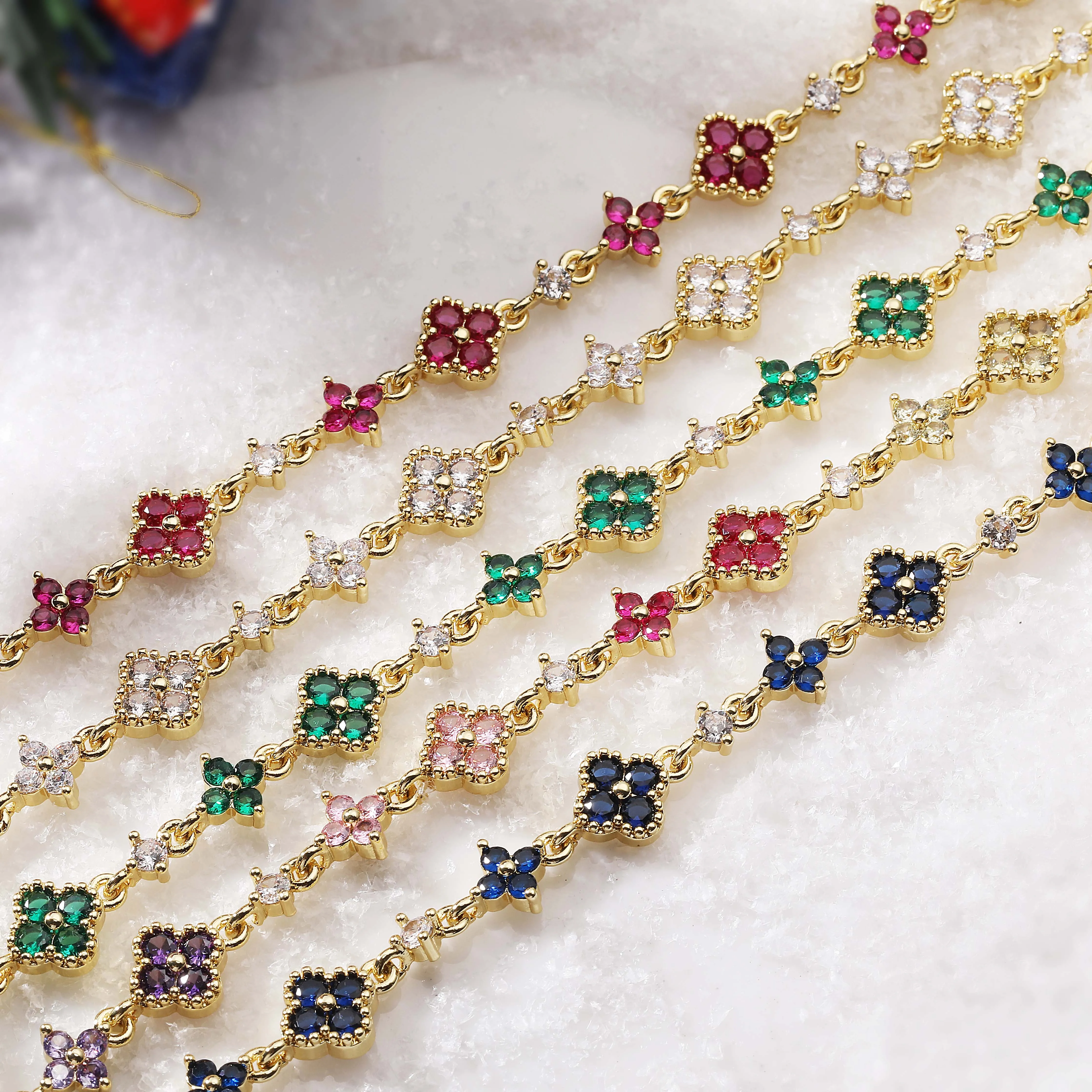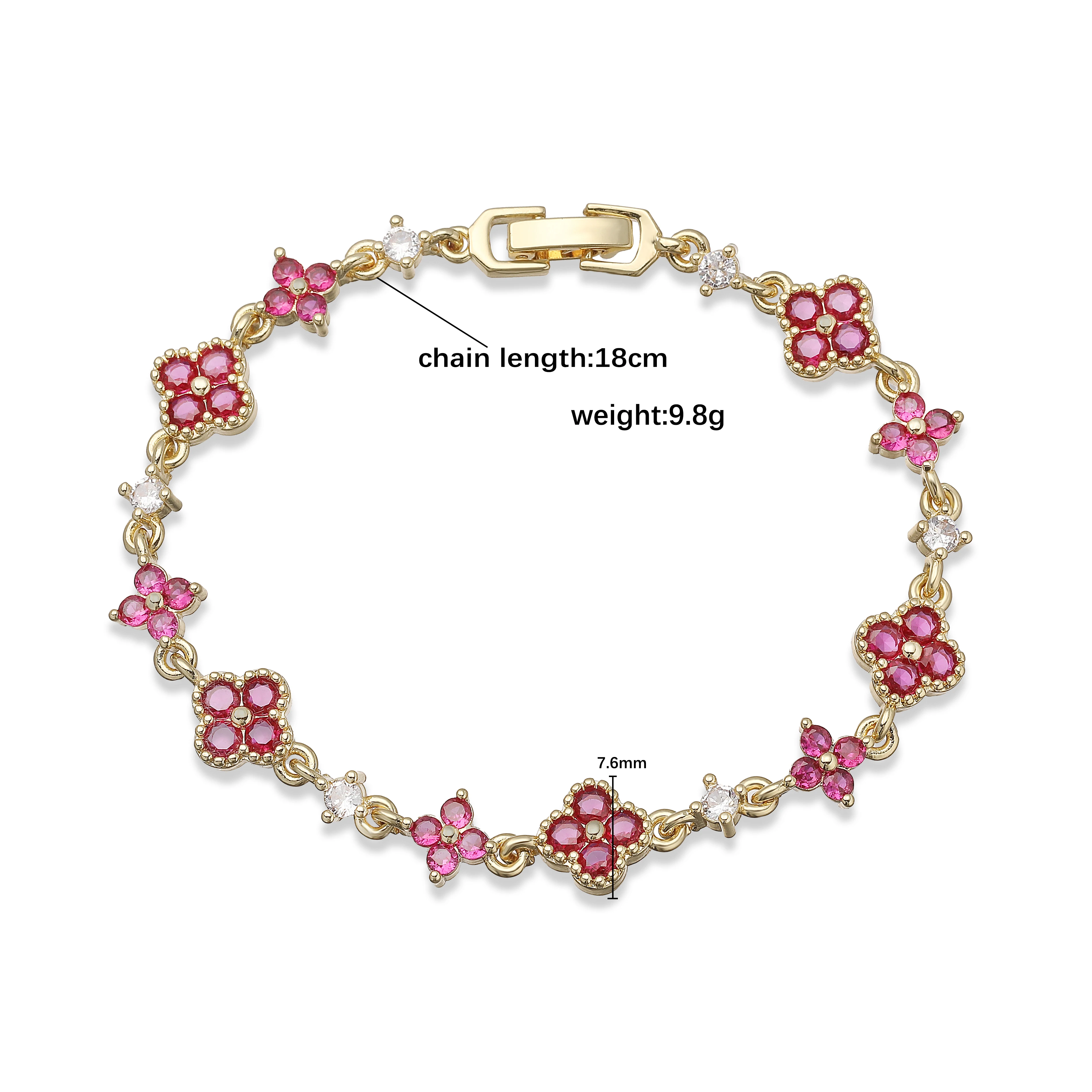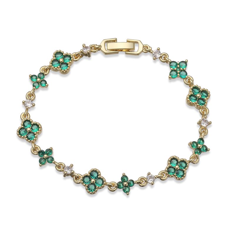 HECHENG,Four-Leaf Clover Multi-Color CZ Stone Pendant Chain Bracelet with Hook Clasp Design Women's Exquisite Minimalist Jewelry