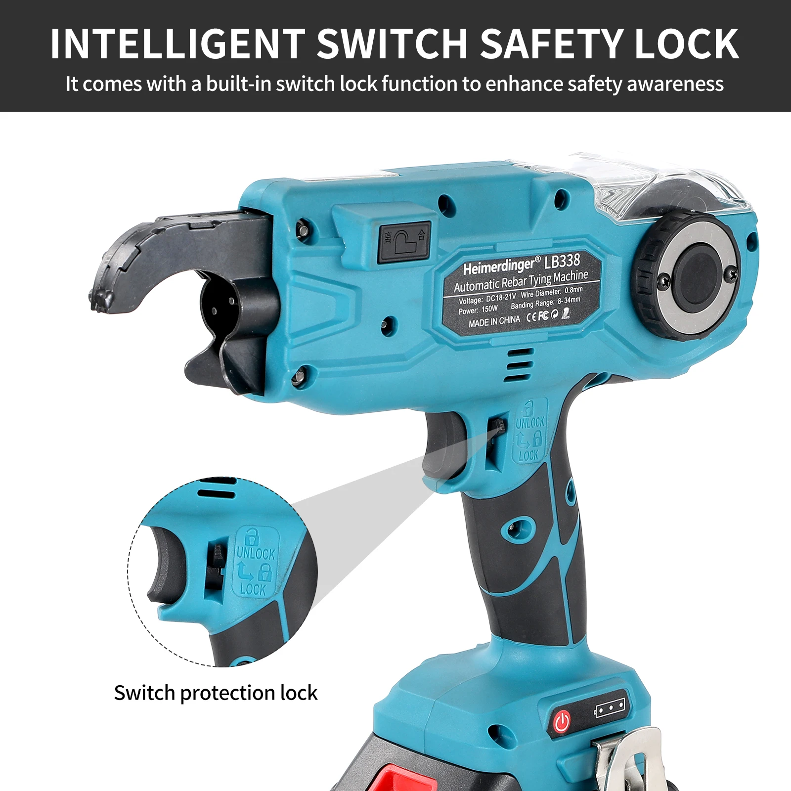 Heimerdinger 18V 8-34MM Rebar Tier Cordless Rechargeable Tying Binding Machine Automatic Rebar Tying Wire Rebar Binding Machine