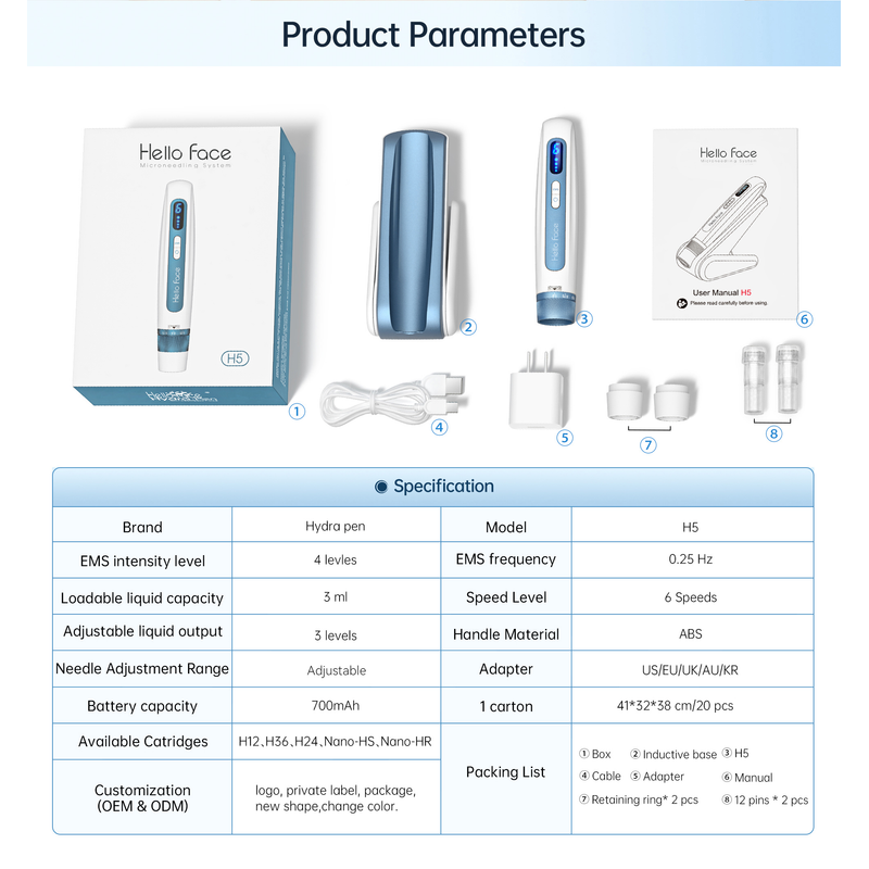 Hello Face Microneedling Pen H5 - Adjustable Needle Length, 3ml Dispensing Volume, Automatic Serum Application,6-level Speed, Digital Display, Built-in 700mAh Battery