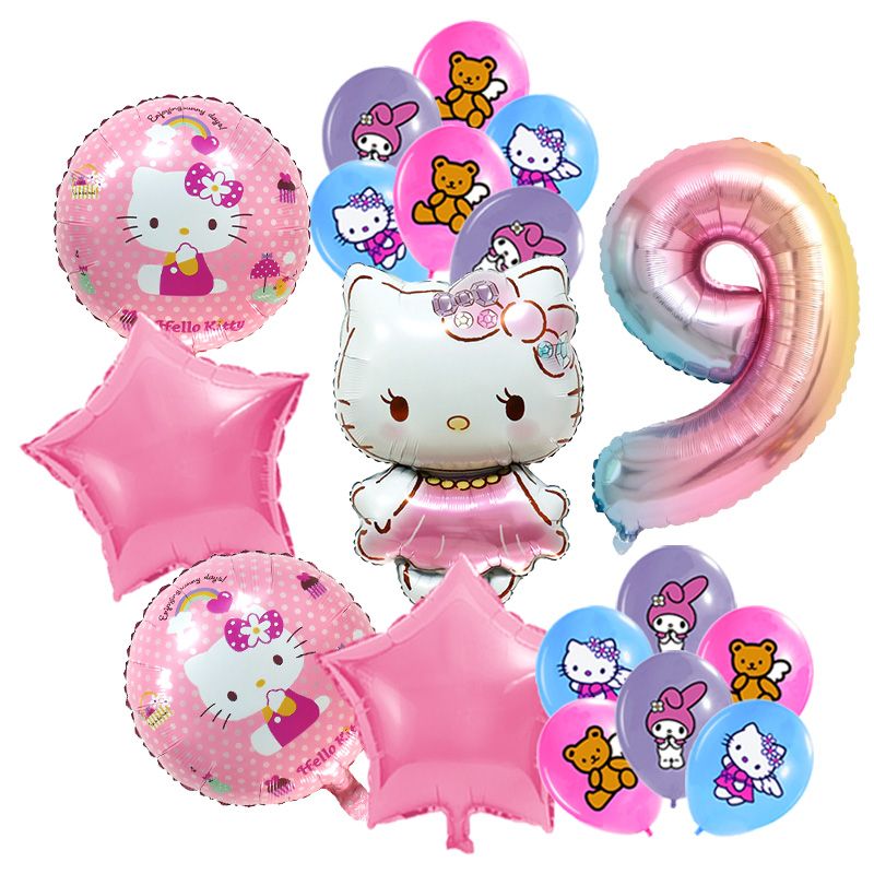 Balloon Set 1~9 (1pcs 32inches Number Balloon + 5pcs Aluminum Foil Balloon + 12pcs Latex Balloon) - total 18pcs