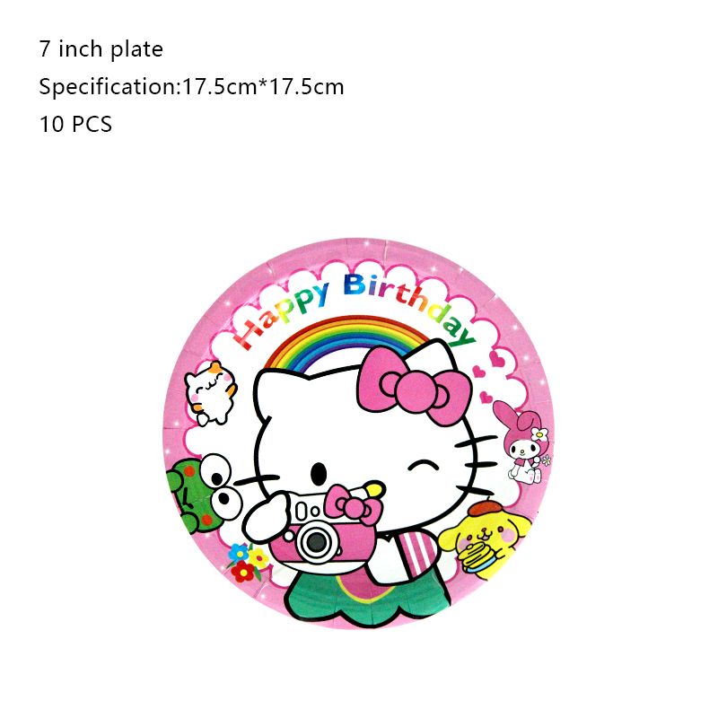 Hello Kitty Birthday Party Decoration Backdrop Banner For Kids Aluminum Foil Latex Balloon Disposable Tableware Gift