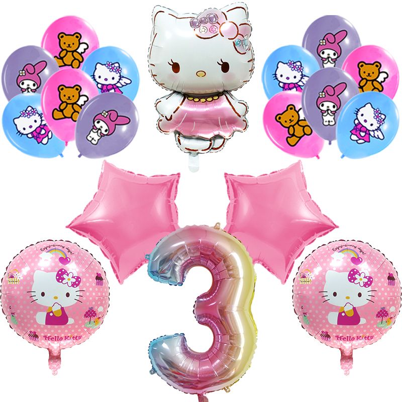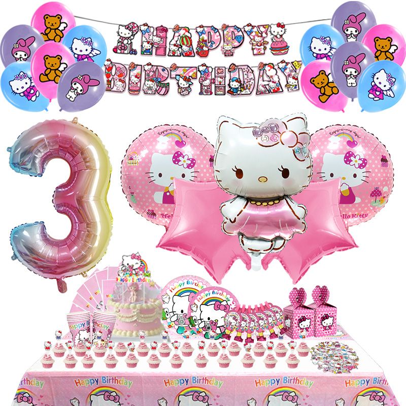 Hello Kitty Birthday Party Decoration Latex Balloons Disposable Tableware Kid Event Supplies Banner Backdrop Balloon Toy Straw