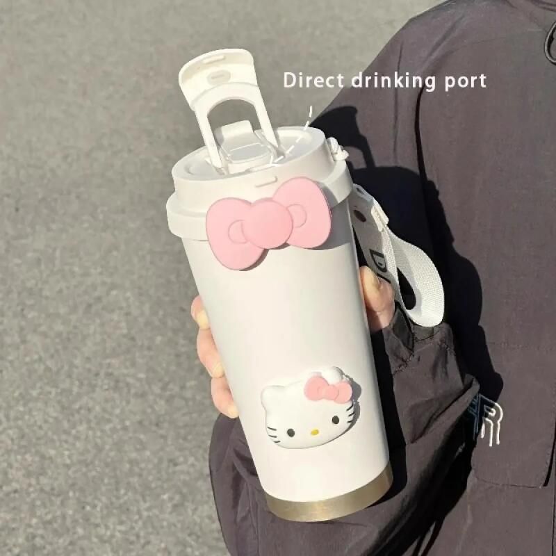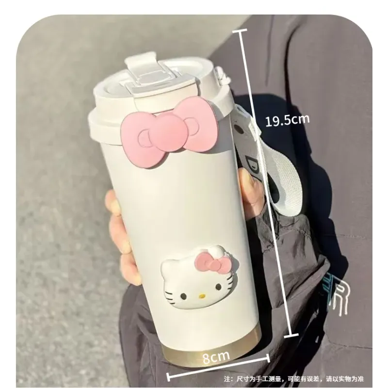 Hello Kitty Insulated Tumbler with Straw Large Capacity Leak Proof Travel Coffee Cup Cute Cartoon Thermos for School Gym Car