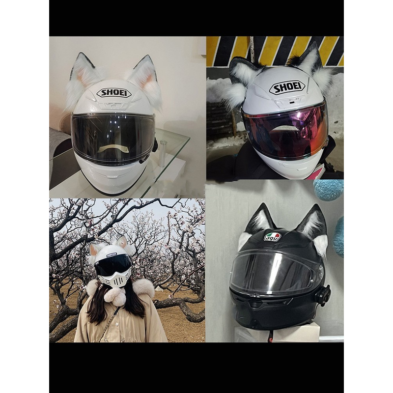 Helmet Ornaments Cat Ears Beast Ears Motorcycle Electric Bike Female Front white back black rainbow No helmet