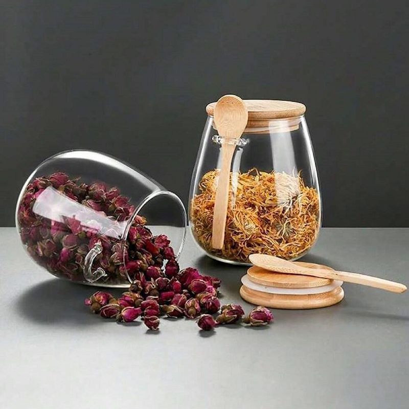 1. Glass Jar Set: Made of high-quality borosilicate glass, these jars are durable and resistant to cracking. Equipped with natural bamboo material lid and spoon, practical and simple, adding a touch of elegance to your kitchen or pantry.