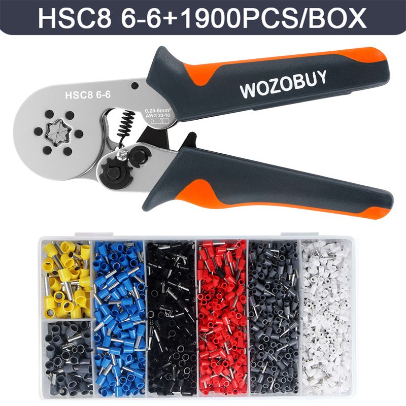 Hexagonal Ferrule Crimp Tool Wire Ferrule Crimping Tool HSC8 6-6/6-4 Self-adjustable Ratcheting Crimper for AWG23-10 0.25-6.0mm²