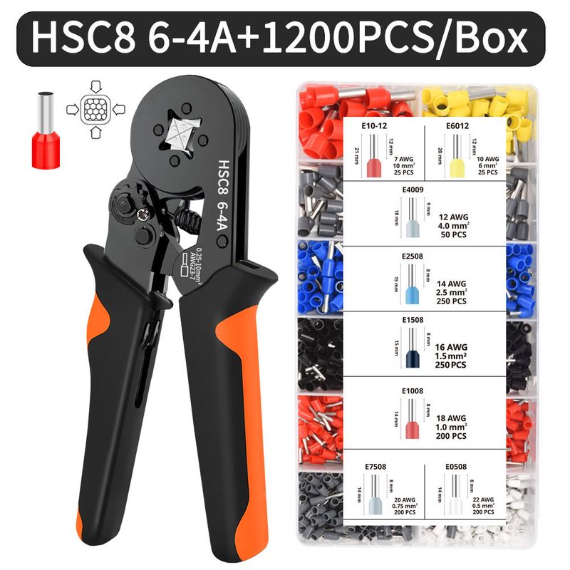 Hexagonal Self-Adjustable Ratchet Ferrule Crimping Tool Kit 23-7AWG 0.25-10mm² Crimper Kit with Ferrule Sleeves Wire Terminals