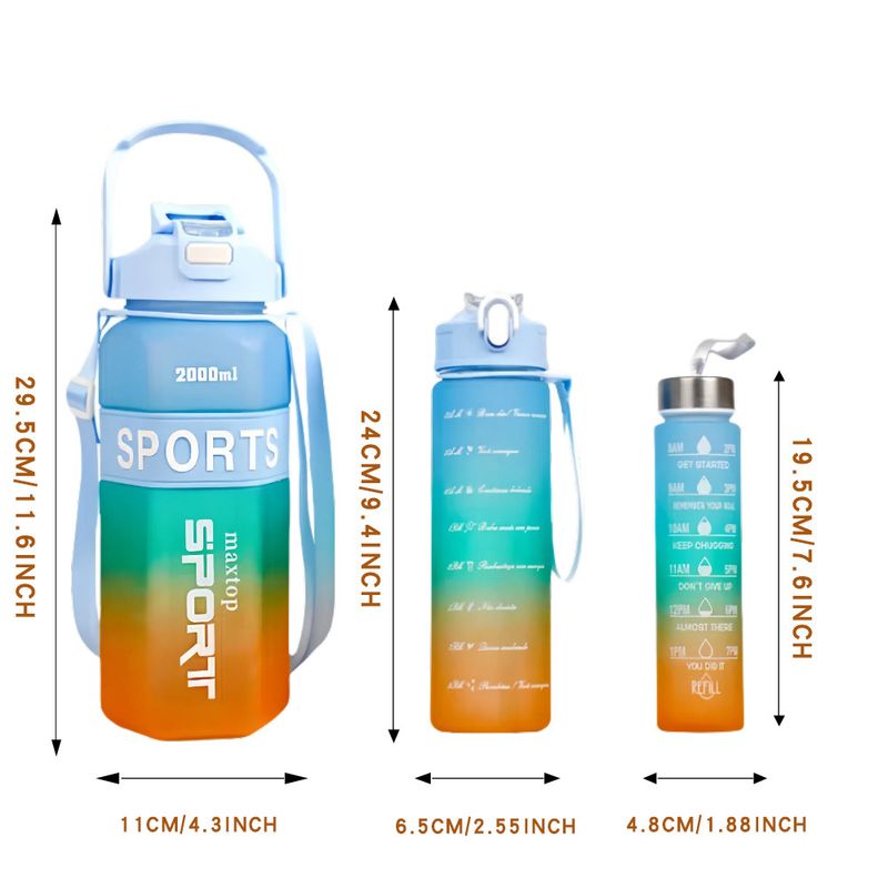 Hexagonal Three-piece Cup Large Capacity Sports Gradient Water Bottle Portable Double Drink Cup Rose Red Set