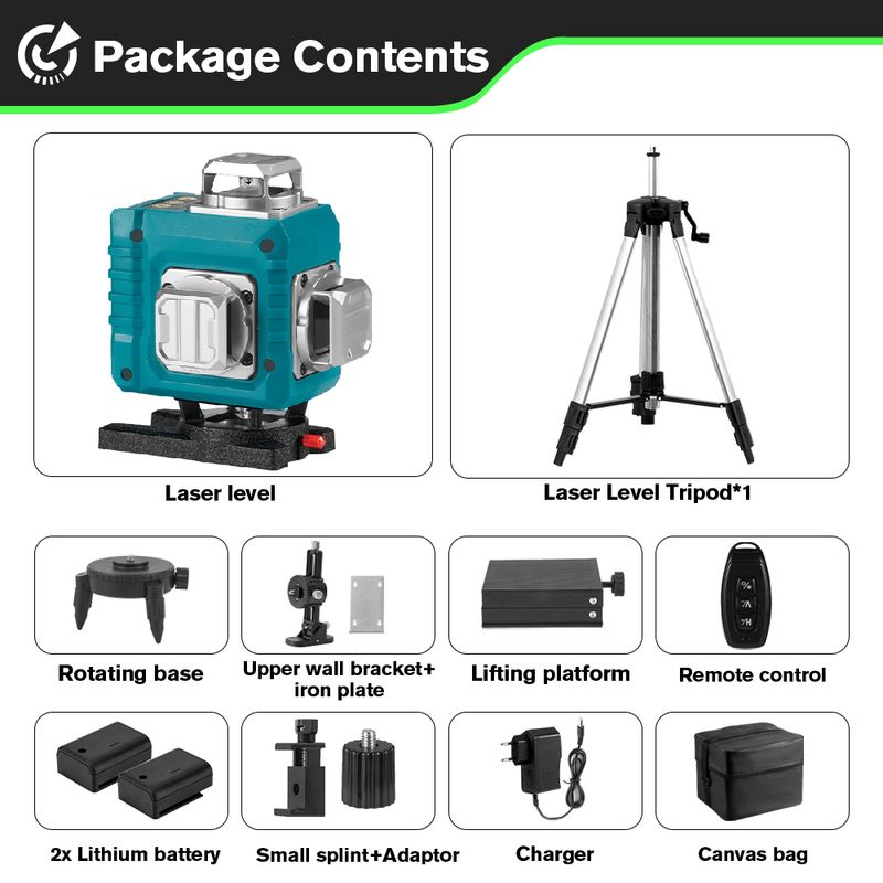 -Two control modes: Mobile APP remote control and Bluetooth remote control, you can select the lines you needed by the remoter when you are inconvenient to move the laser level.