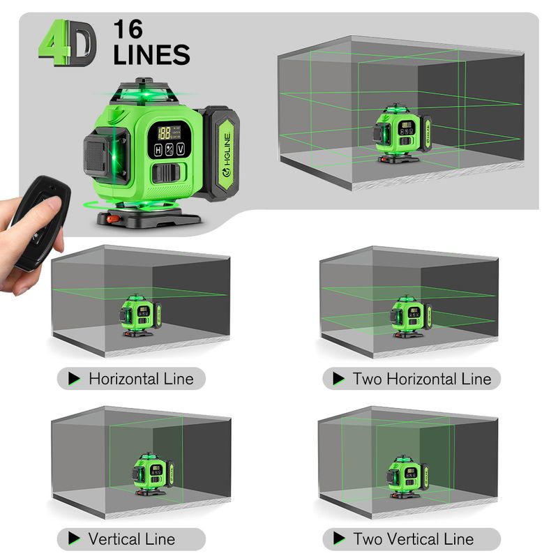 HGLINE 16 Lines Laser Level Professional Construction Laser Tool 360° Horizontal Vertical Levels Machine With 6000mAh Battery