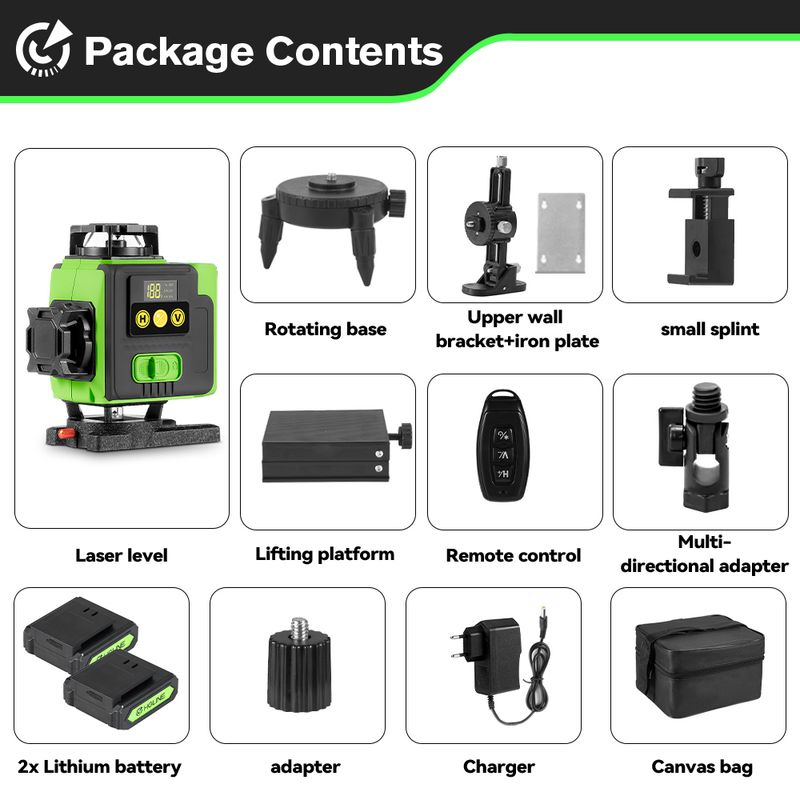 �� Self-Leveling Function:Our laser level boasts advanced features such as a self-leveling function, multiple mounting options, and a long-distance projection range, making it an essential tool for any project.this laser level ensures that your lines are perfectly straight and level. No more wasting time on manual adjustments or using bubble levels. Simply set up the laser level, and it will automatically adjust to provide accurate measurements.