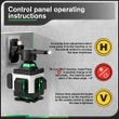 - Equipped with a remote control, "V" = vertical line, "H" = horizontal line. You can easily adjust the brightness of the laser light by pressing the "+" or "-" buttons.