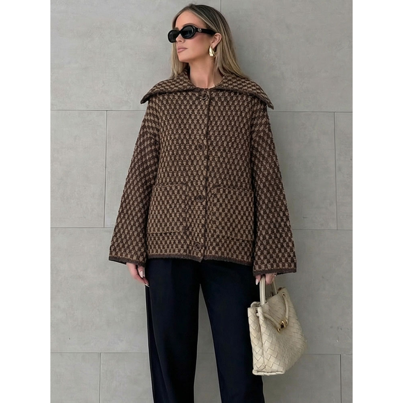 HH 2026 Spring Jacket For Women Loose Casual Knitted Cardigans Lapel Single Breasted Long Sleeve Sweater Coat High Street Tops
