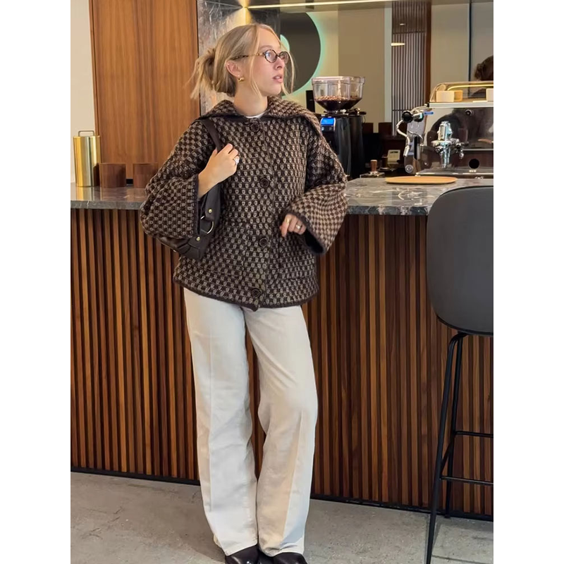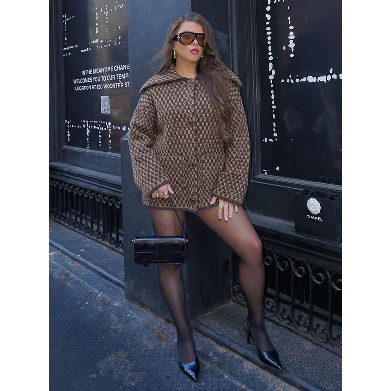 HH Women Vintage Plaid Knitted Cardigans Coats Long Sleeve Lapel Buttons Sweater Jackets Spring Casual Office Lady Trend Outwear