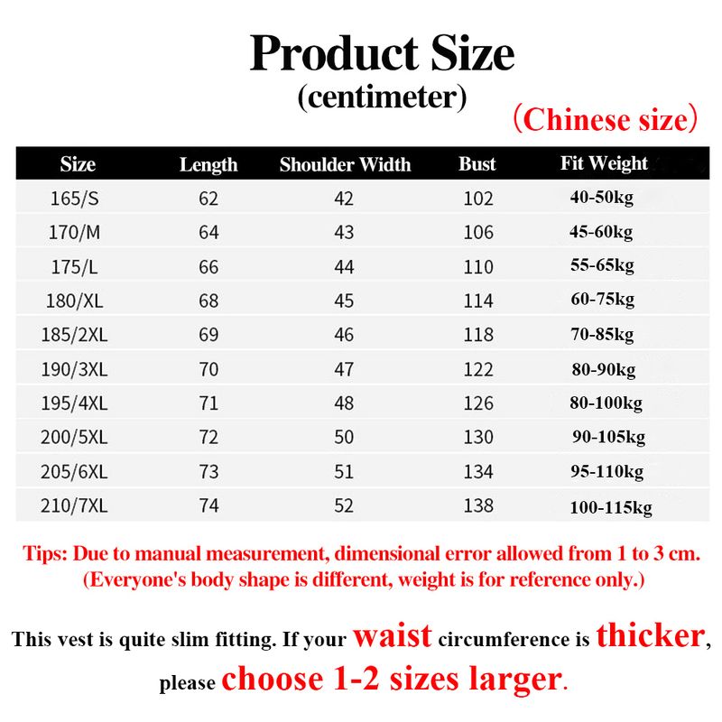 This vest is quite slim fitting. If your waist circumference is thicker, please choose 1-2 sizes larger.