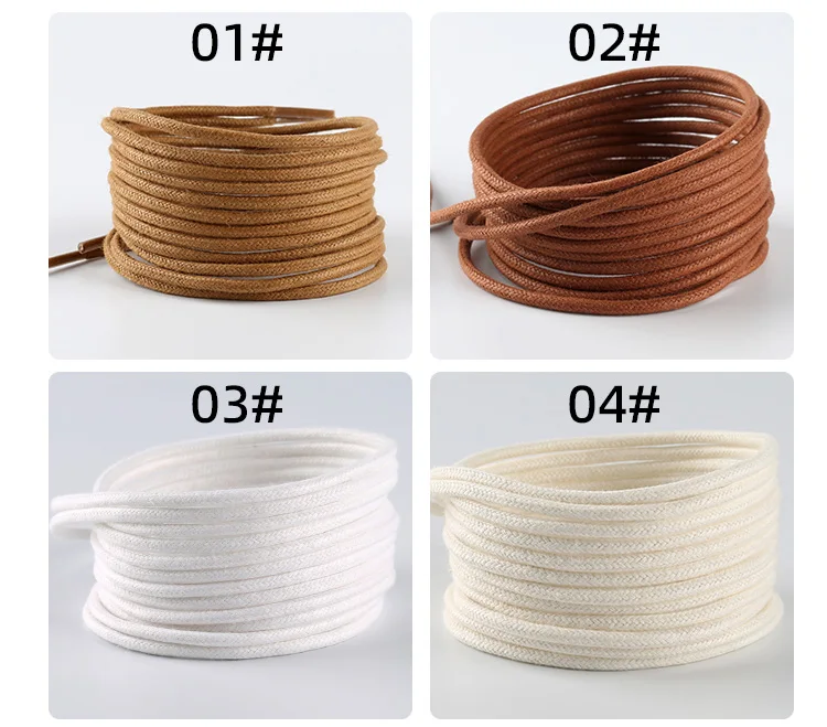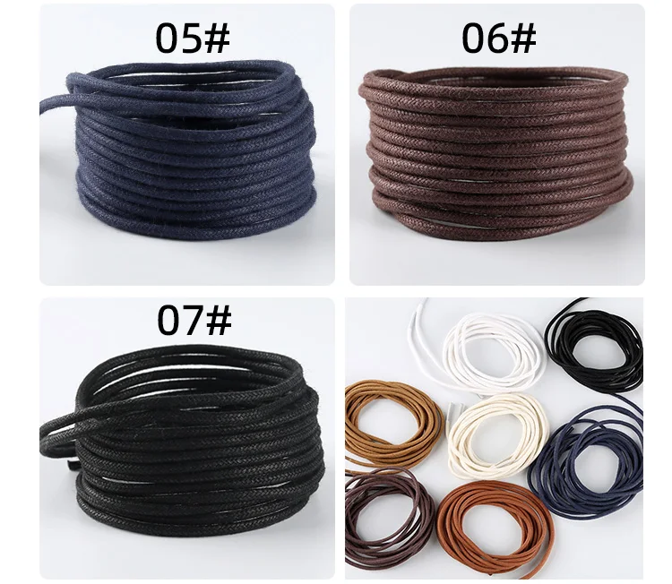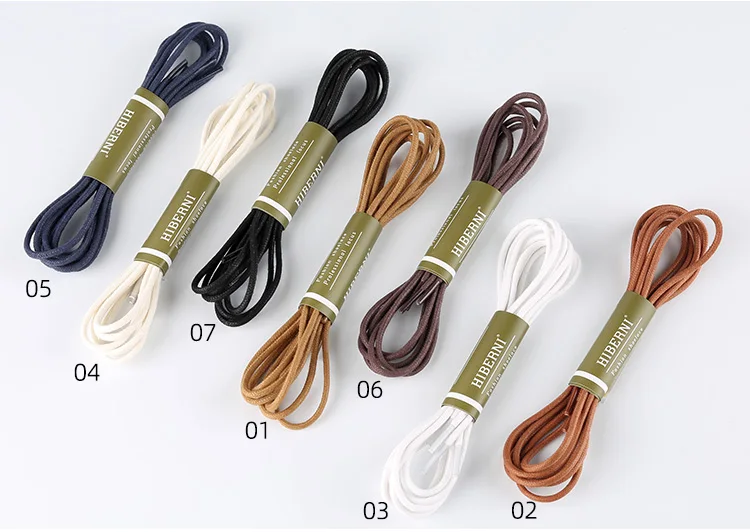 HIBERNI circular cotton shoe strap with a diameter of 2mm black brown white 60/80/90/100/120cm for leather shoes Shoelaces