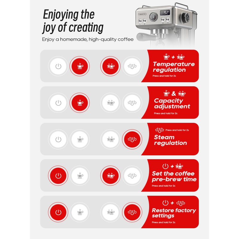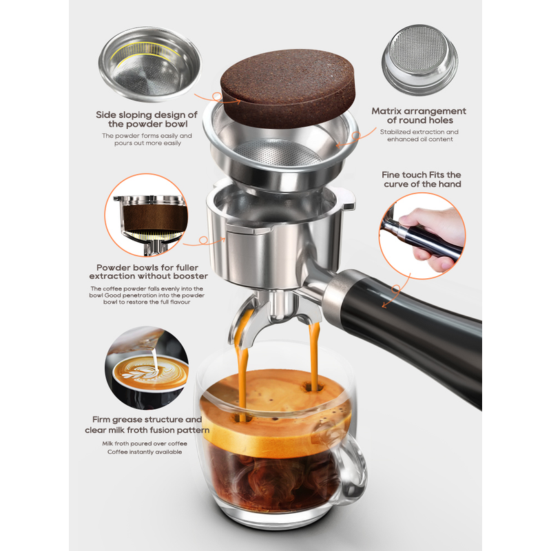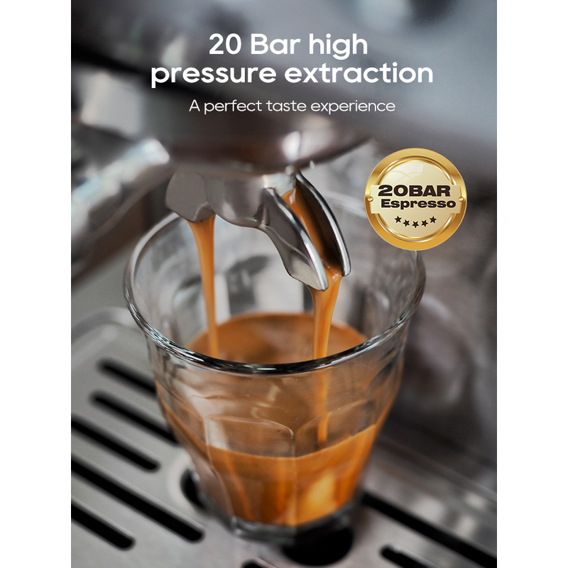HiBREW 20Bar Semi Automatic Espresso Coffee Machine Temperature Adjustable 58mm Portafilter Cold/Hot Coffee Maker Metal CaseH10A