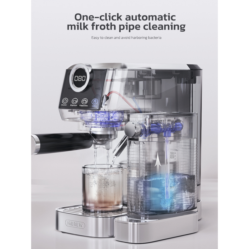 HiBREW 3 in 1 Semi Automatic Espresso Cappuccino Latte Coffee Machine Automatic Milk Froth Ground Coffee Stainless Steels H13A