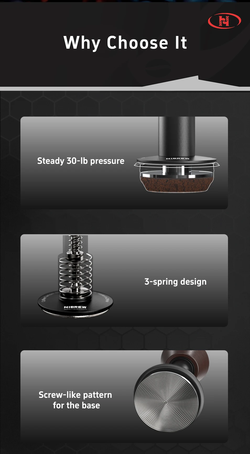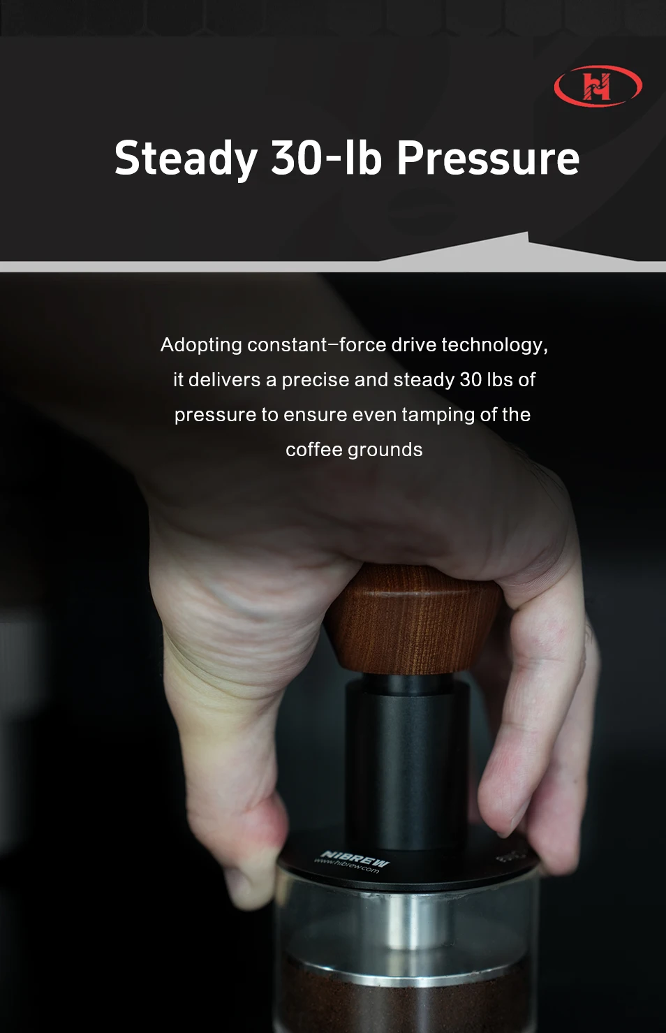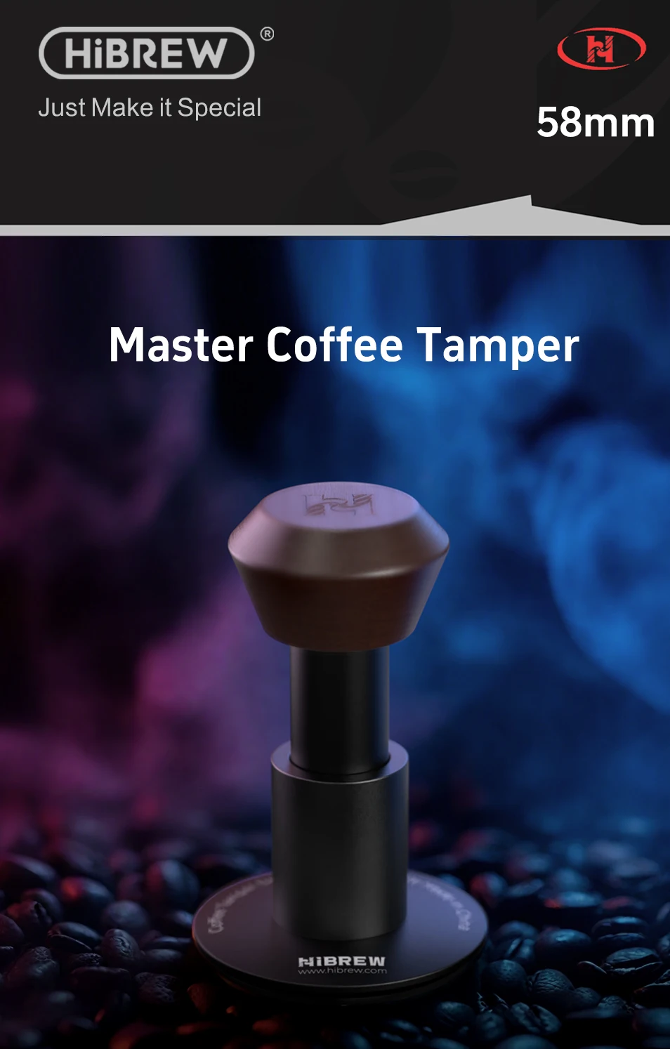 HiBREW Espresso Tamper Coffee 58mm Constant Pressure Ripple Base Calibrated Spring Loaded Barista Tool for G5 H10A H7A H13