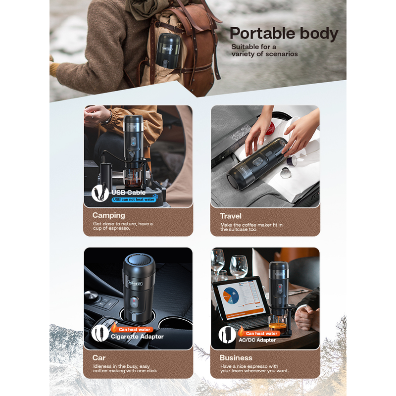 HiBREW Portable Coffee Machine for Car & Home,DC12V Expresso Coffee Maker Fit Nexpresso Dolce Pod Capsule Coffee Powder H4A