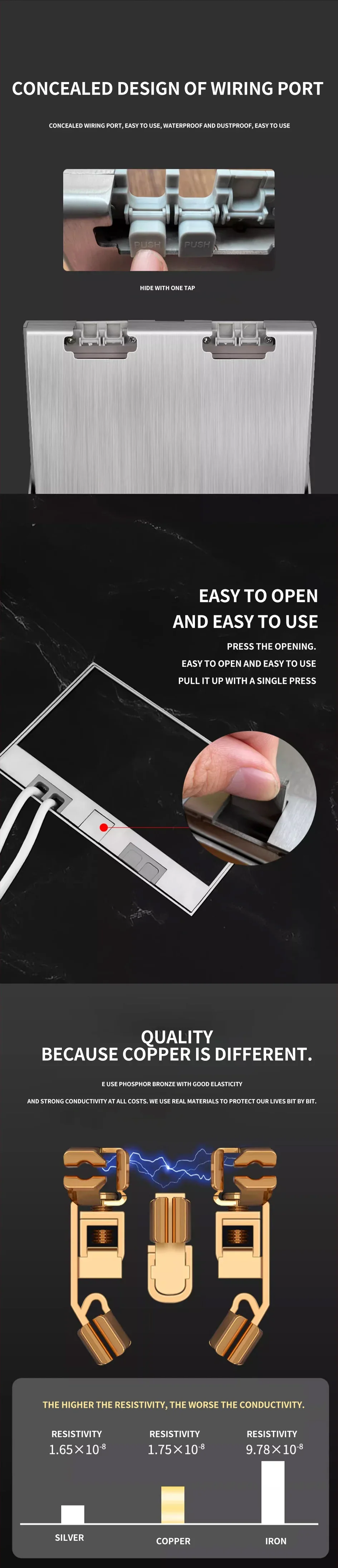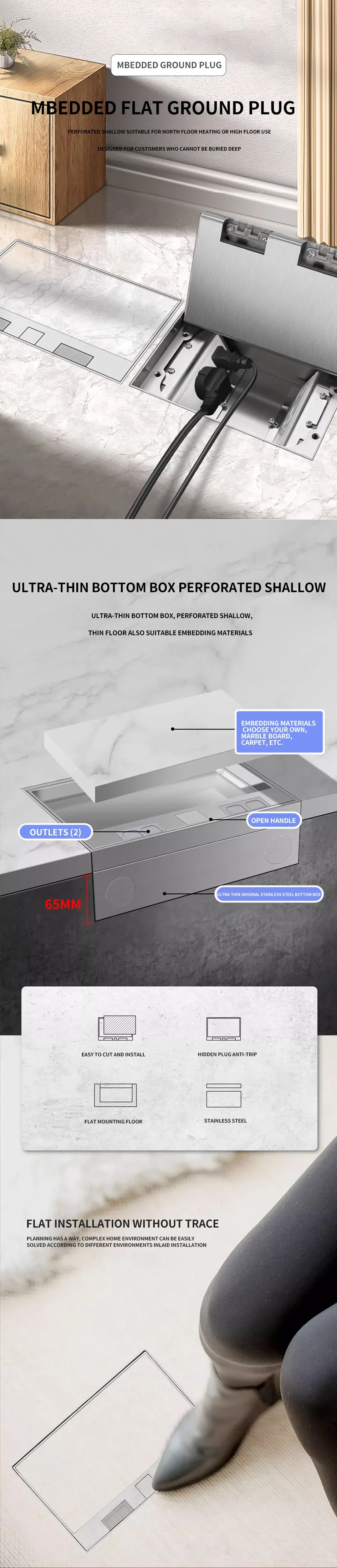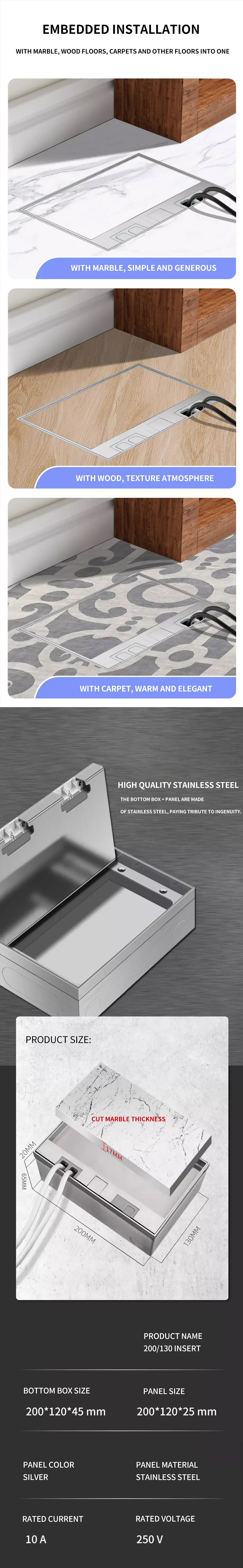 Hidden Inlaid Floor Socket: Ultra-thin Embedded Design Accommodating Multiple USB and EU FR UN US AC Power Outlets 130MM X 200MM