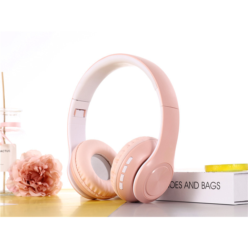 HIFI Wireless Headphones Bluetooth Stereo Headset Music Headset FM SD Card Sport Headphone With Mic For PC Pink