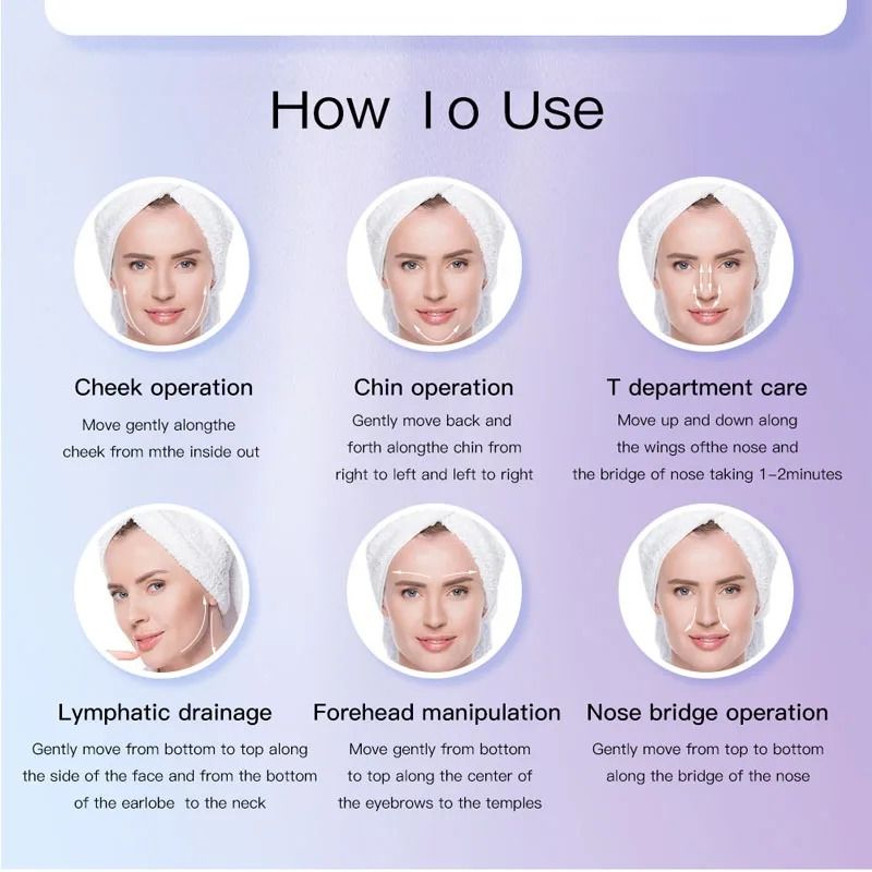 RF(1-6 gear;Red light): Red light therapy kill old cells,promote elastic fiber regeneration,stimulating collagen and elastin production,to plump and firm loose skin.