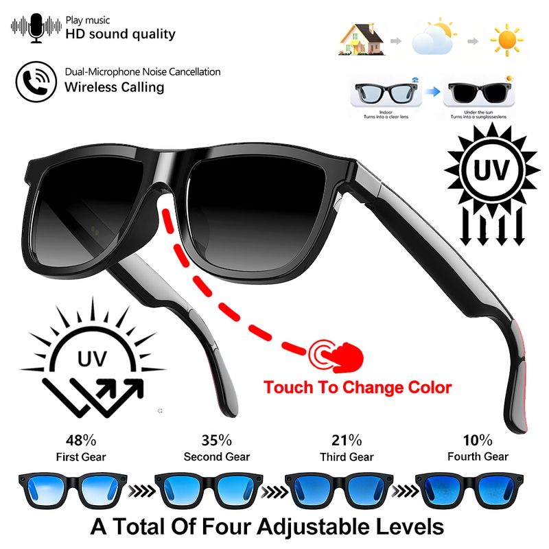 High Appearance Audio Glasses Electrochromic Lenses Answer Calls Play Music Magnetic Charging Touch To Change Color Smartglasses