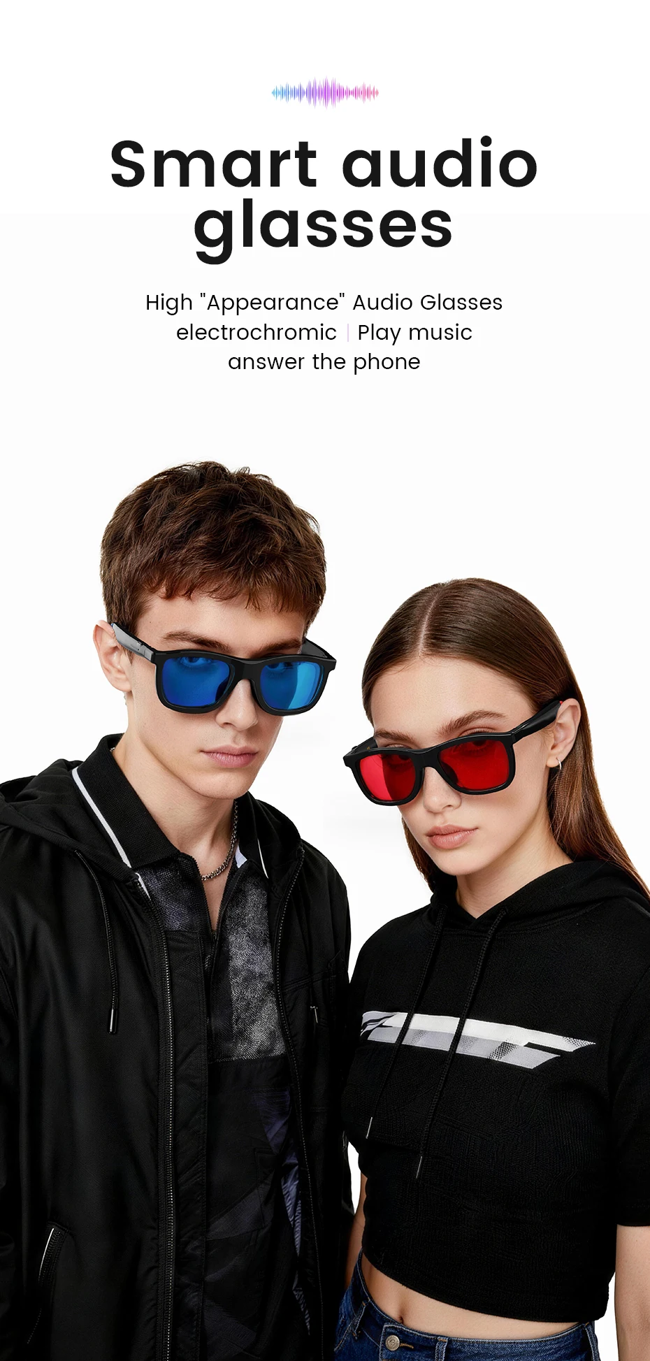 Experience crystal-clear audio with our Smart Audio Glasses, featuring advanced Bluetooth 5.3 for seamless sound transmission.
