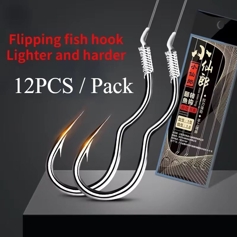 High Carbon Steel Fishing Hook Sharp Barbed Automatic Flip 12Pcs/Pack Fishhook for Silver Carp Bighead Fishing Accessories