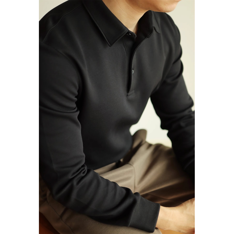 High-end Air Layer Cotton Long-sleeved Polo Shirt Black S
