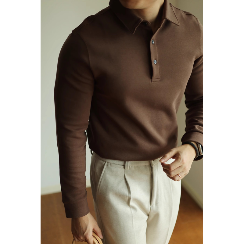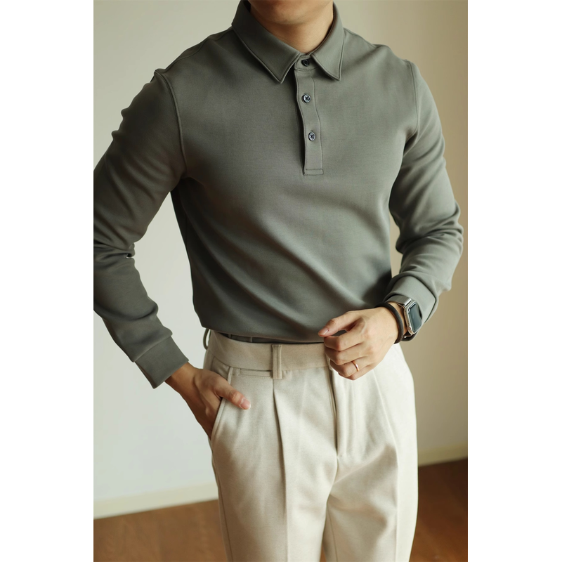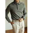 High-end Air Layer Cotton Long-sleeved Polo Shirt grey green S