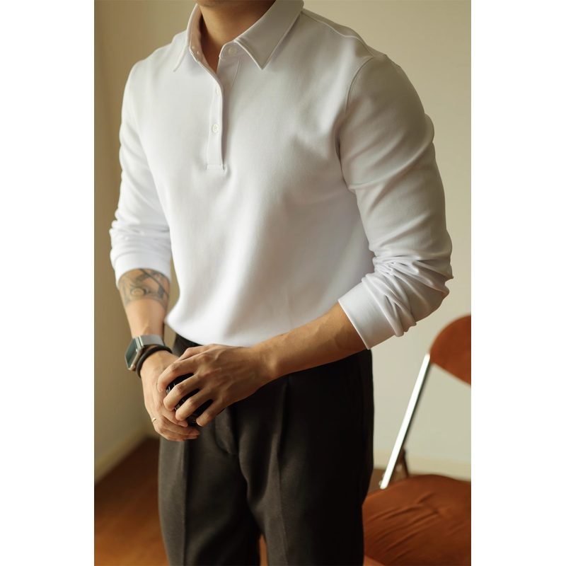 High-end Air Layer Cotton Long-sleeved Polo Shirt white S