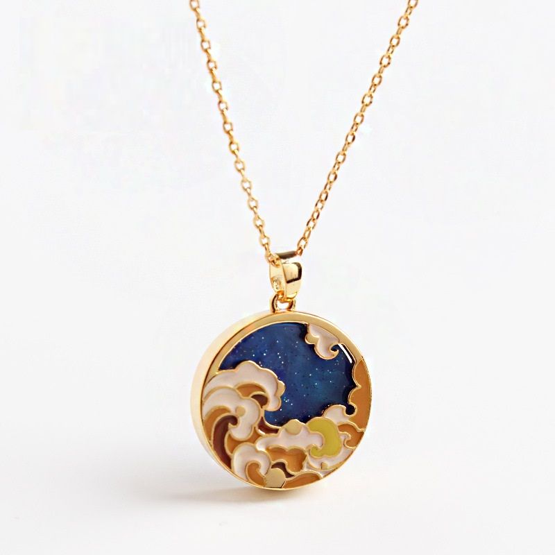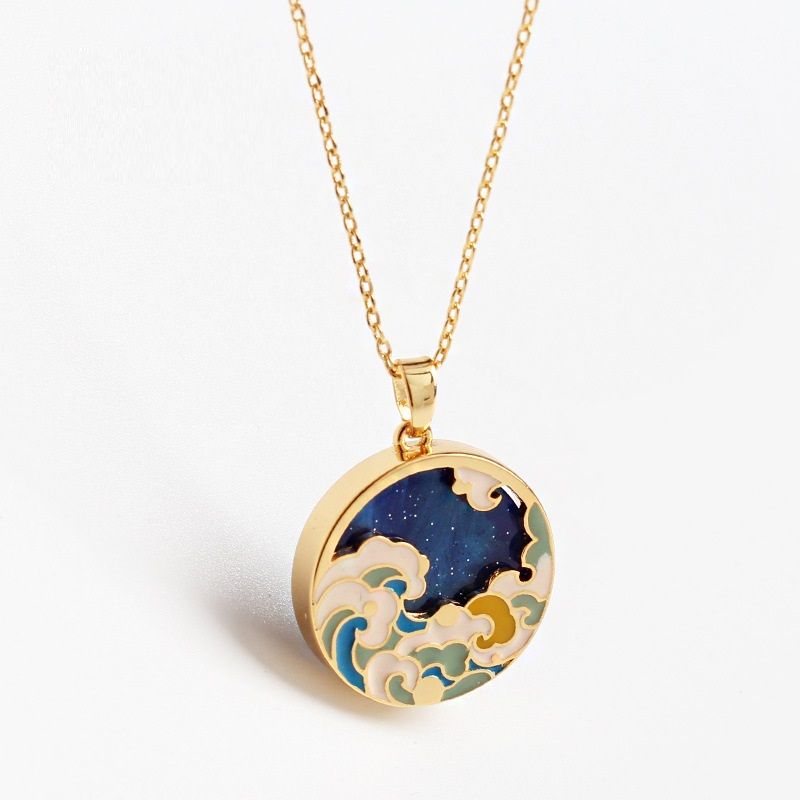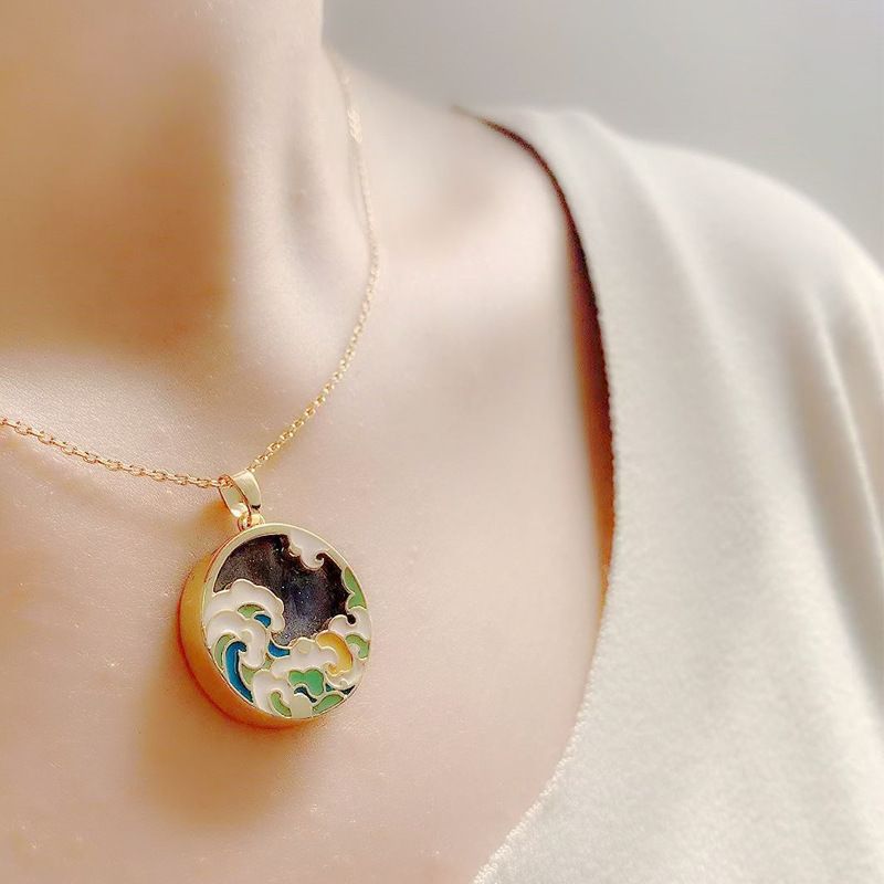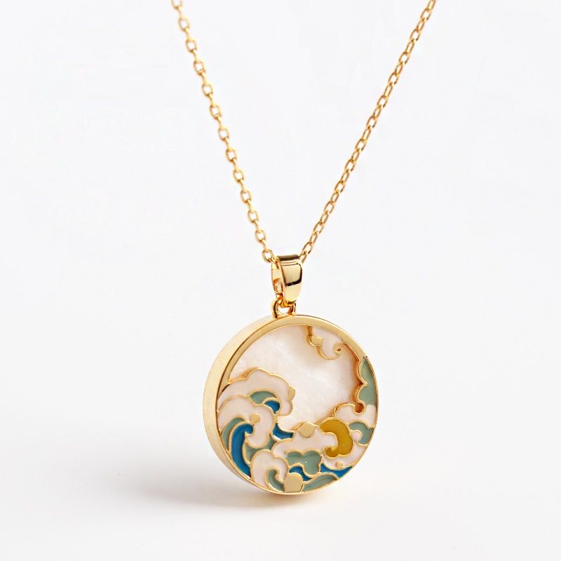 High-end Design Light Luxury Enamel Vintage Necklace For Women Blue Green Shell White